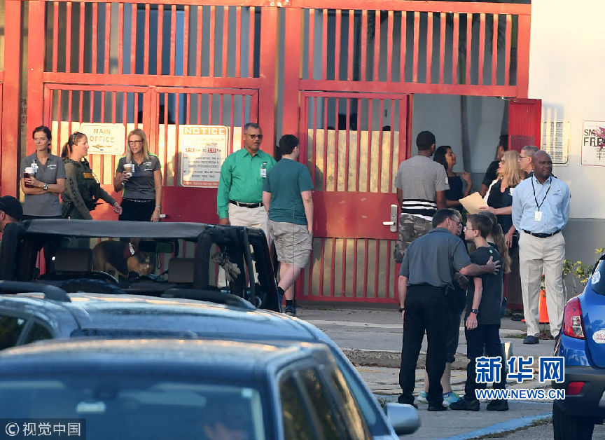 當(dāng)?shù)貢r(shí)間2月28日,美國(guó)佛羅里達(dá)州帕克蘭,發(fā)生槍擊案的道格拉斯中學(xué)復(fù)課,學(xué)生和教職工重返校園,大批警察出動(dòng)維護(hù)治安。2月14日,一名19歲的槍手在學(xué)校里開(kāi)槍?zhuān)斐?7人死亡。(圖片來(lái)源:視覺(jué)中國(guó))