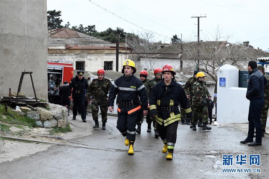 3月2日,在阿塞拜疆首都巴庫(kù),消防人員趕往火災(zāi)現(xiàn)場(chǎng)救援。 新華社發(fā)(巴巴耶夫攝)