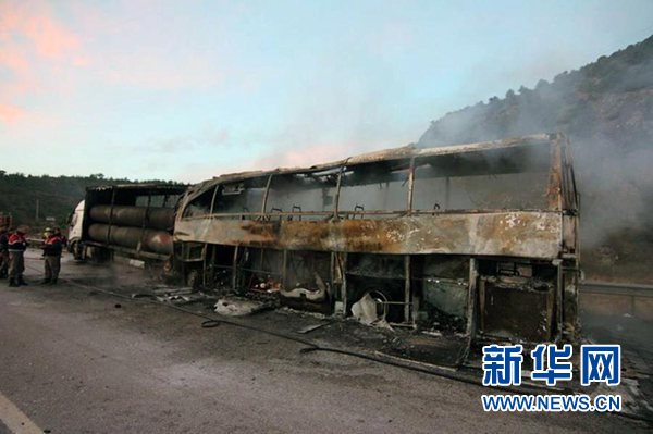電視臺(tái)現(xiàn)場(chǎng)畫面顯示,大巴車嚴(yán)重?fù)p毀,只剩焦黑的車架。一位幸存乘客說,事發(fā)時(shí)車上乘客大多在睡夢(mèng)中。有乘客打碎車窗逃生,未能逃出的乘客則大多遭遇不幸。