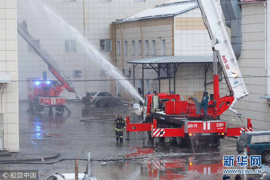 當?shù)貢r間2018年3月25日,俄羅斯西西伯利亞南部城市克麥羅沃一家購物中心發(fā)生重大火災。據(jù)俄緊急情況部26日發(fā)布的消息,大火已造成64人死亡。(圖片來源:視覺中國)