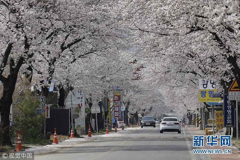 韓國(guó)櫻花盛放 吸引游客觀賞