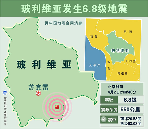 圖表:玻利維亞發(fā)生6.8級地震 新華社記者 孟麗靜 編制