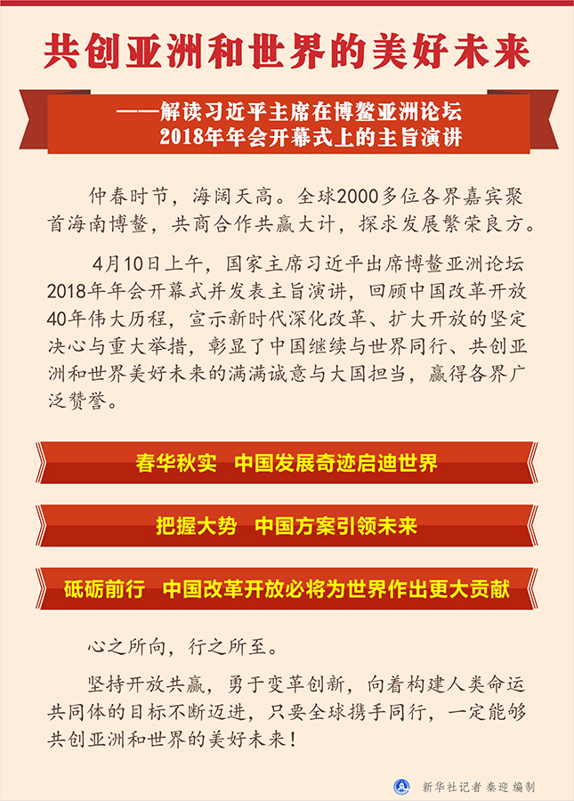 新華社海南博鰲4月10日電? 題:共創(chuàng)亞洲和世界的美好未來——解讀習(xí)近平主席在博鰲亞洲論壇2018年年會開幕式上的主旨演講