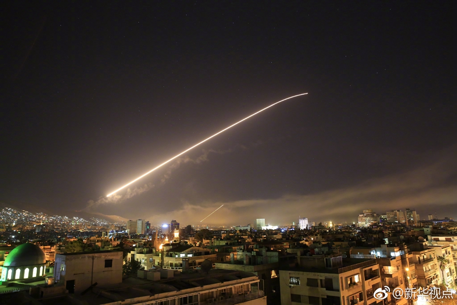 新華社記者在大馬士革城區(qū)看到,閃著紅光的飛彈不時射向天空,遠處煙霧升騰。敘利亞軍方在首都周邊多地部署了防空力量,第一時間對襲擊給予回應。