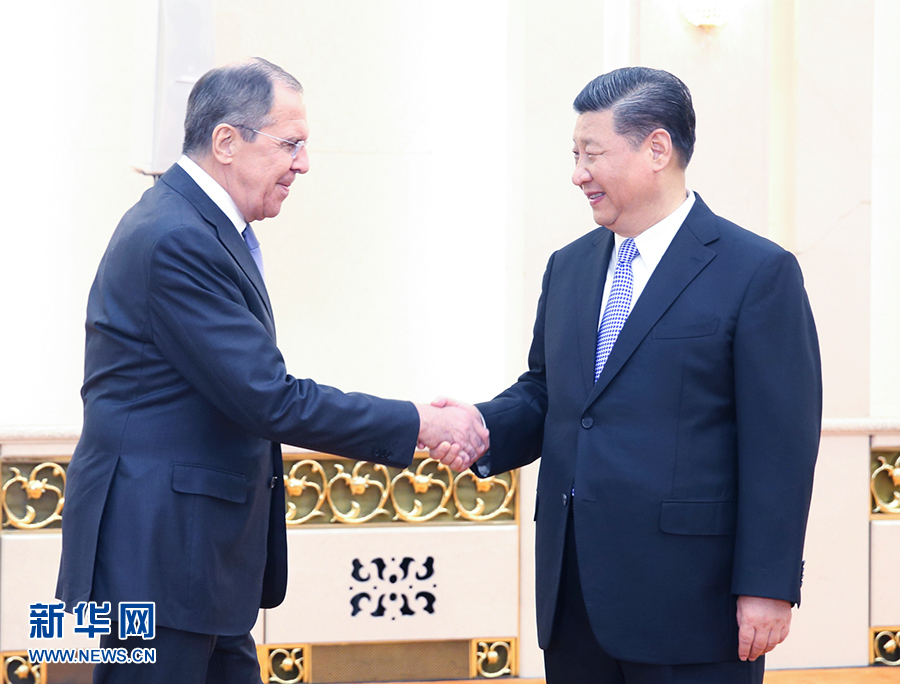 4月23日,國家主席習(xí)近平在北京人民大會堂會見俄羅斯外長拉夫羅夫。 新華社記者 姚大偉 攝