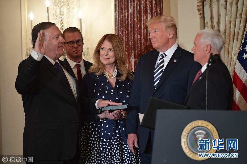 今年3月13日,特朗普宣布提名時任中央情報局局長蓬佩奧接替蒂勒森擔任國務(wù)卿。4月26日,美國國會參議院投票批準蓬佩奧出任國務(wù)卿。