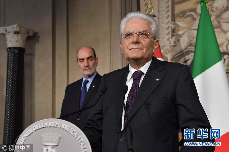 當(dāng)?shù)貢r(shí)間2018年5月7日,意大利羅馬,意大利總統(tǒng)塞爾焦·馬塔雷拉7日召集新一輪組閣談判并出席新聞發(fā)布會(huì)。如果所有組閣努力失敗,馬塔雷拉將授權(quán)組建技術(shù)官僚組成的過(guò)渡政府。(圖片來(lái)源:視覺中國(guó))