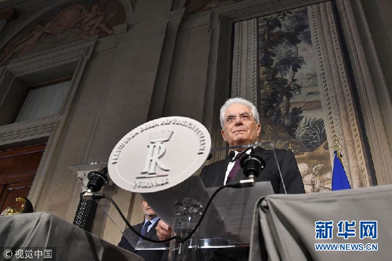 當(dāng)?shù)貢r間2018年5月7日,意大利羅馬,意大利總統(tǒng)塞爾焦·馬塔雷拉7日召集新一輪組閣談判并出席新聞發(fā)布會。如果所有組閣努力失敗,馬塔雷拉將授權(quán)組建技術(shù)官僚組成的過渡政府。(圖片來源:視覺中國)