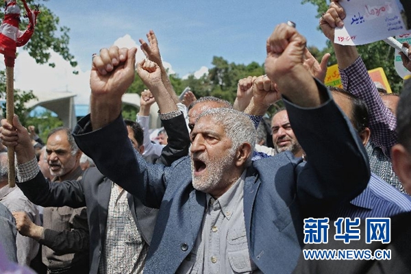 在當(dāng)天的示威活動(dòng)中,伊朗民眾手持“維護(hù)伊核協(xié)議、維護(hù)地區(qū)和平”和“伊朗不懼外來(lái)威脅”等標(biāo)語(yǔ)并高呼口號(hào)。
