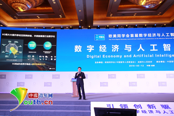 5月12日,歐美同學(xué)會(huì)首屆數(shù)字經(jīng)濟(jì)與人工智能大會(huì)“數(shù)字經(jīng)濟(jì)與人工智能現(xiàn)狀與趨勢(shì)”論壇上,華為5G產(chǎn)品線副總裁杜葉青發(fā)表演講。中國(guó)青年網(wǎng)記者 馬珊 攝