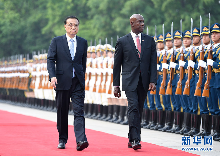 5月14日,國務(wù)院總理李克強在北京人民大會堂同來華進(jìn)行正式訪問的特立尼達(dá)和多巴哥總理羅利舉行會談。會談前,李克強在人民大會堂東門外廣場為羅利舉行歡迎儀式。新華社記者 燕雁 攝