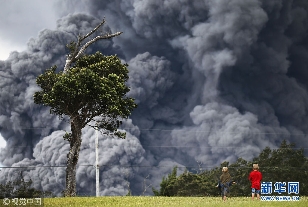 夏威夷基拉韋厄火山持續(xù)噴發(fā) 現(xiàn)場(chǎng)濃煙沖天