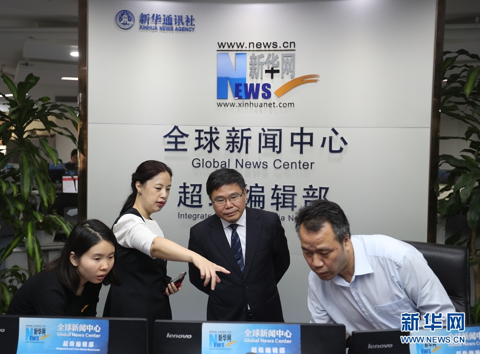 5月16日,外交部拉美司司長趙本堂(左三)接受了新華網(wǎng)獨家專訪。圖為新華網(wǎng)副總編輯劉娟(左二)介紹新華網(wǎng)情況。新華網(wǎng)記者 郭小天攝