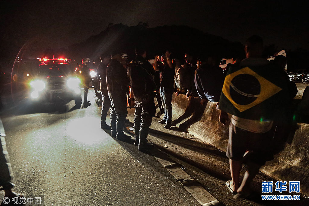 當?shù)貢r間2018年5月26日,巴西圣貝爾納多杜坎普,卡車司機駕車封堵高速公路,抗議油價上漲。(圖片來源:視覺中國)