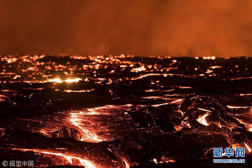 夏威夷火山持續(xù)噴發(fā) 燃燒巖漿映紅夜空