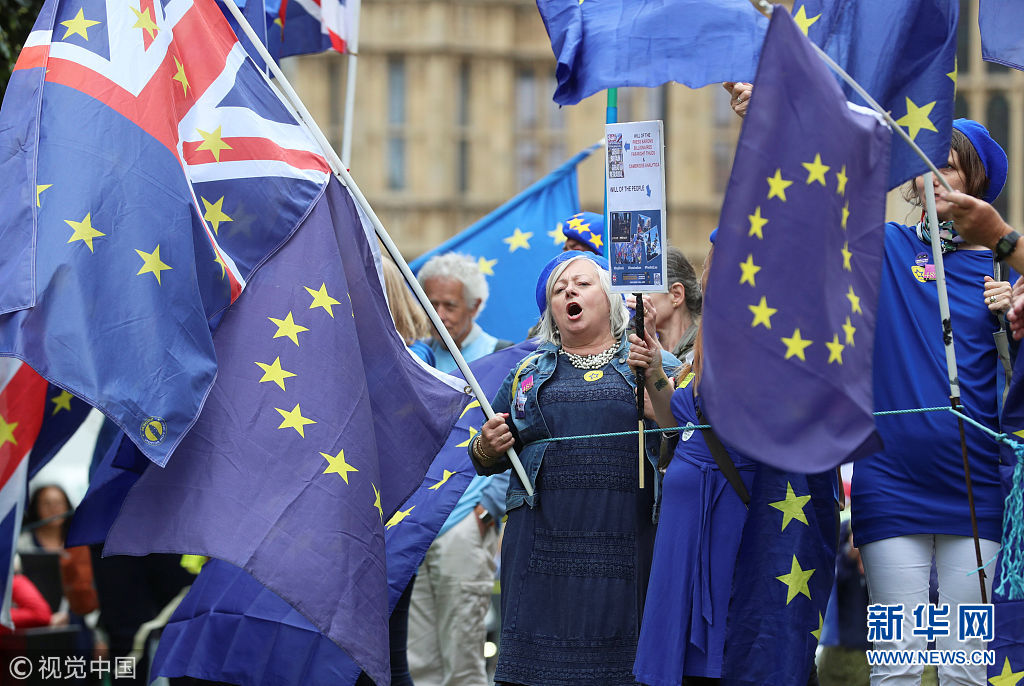 6月12日,英國倫敦,英國下議院將對《退出歐盟法案》進(jìn)行投票,反對脫歐的民眾集會(huì)抗議。(圖片來源:視覺中國)