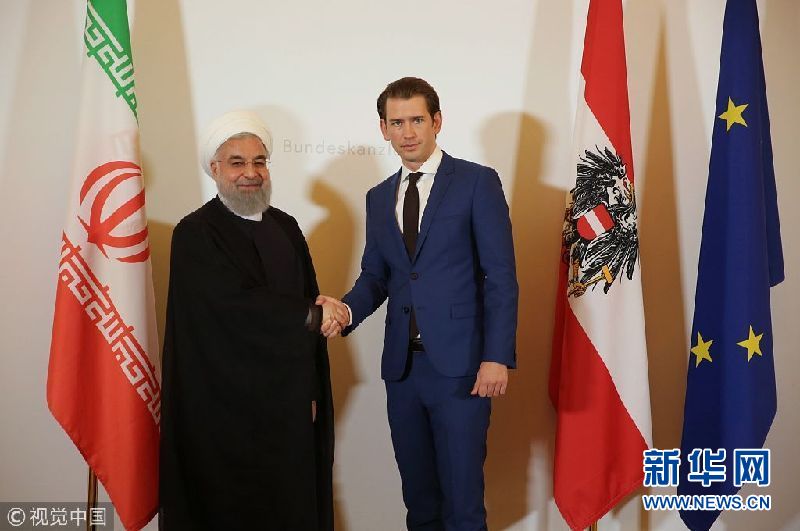 2018年7月4日,奧地利維也納,伊朗總統(tǒng)魯哈尼抵達(dá)奧地利進(jìn)行訪問,會(huì)晤?yuàn)W地利總理塞巴斯蒂安·庫爾茨。伊朗總統(tǒng)魯哈尼2日出發(fā)前往瑞士和奧地利訪問。他這次西歐行將重點(diǎn)討論伊朗核問題全面協(xié)議 (圖片來源:視覺中國)