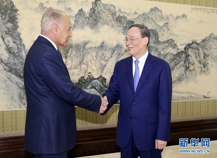 7月9日,國(guó)家副主席王岐山在北京中南海會(huì)見(jiàn)阿拉伯國(guó)家聯(lián)盟秘書(shū)長(zhǎng)蓋特。新華社記者 丁林 攝