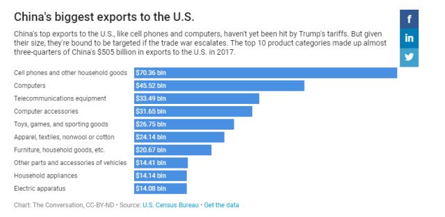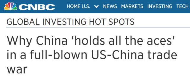 因此,CNBC這篇文章的作者也得出了與“布魯金斯學(xué)會”一樣的結(jié)論,即特朗普現(xiàn)在對中國的打擊只會傷及自身和盟友。這位作者甚至也列舉了CBS新聞網(wǎng)今天提到的那個iPhone手機的例子,并認為一旦中美貿(mào)易戰(zhàn)“全面爆發(fā)”,中國手上可打的“王牌”要比美國多。