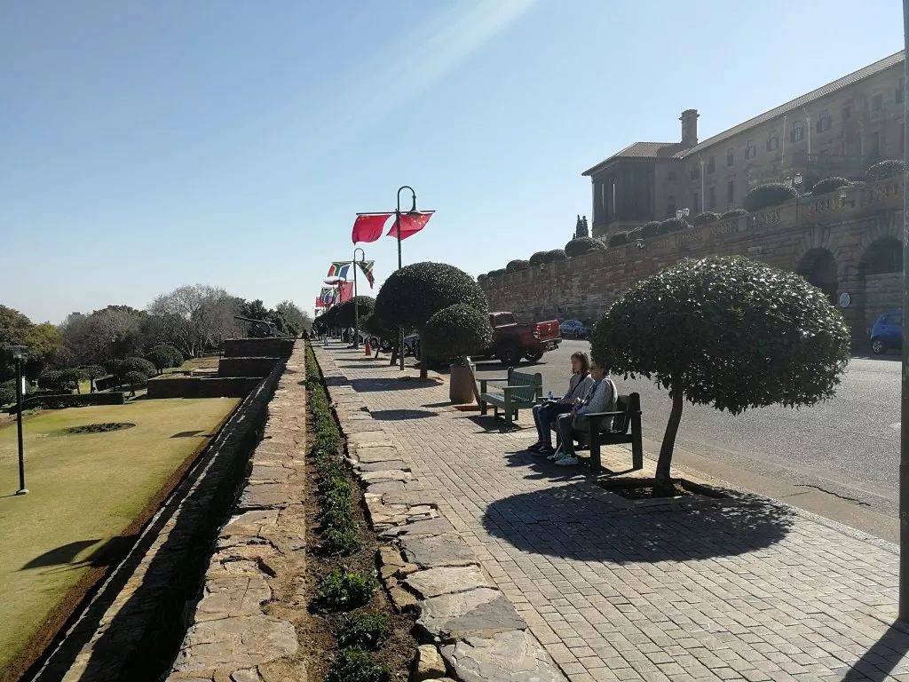 按照以往國事訪問的慣例,南非總統(tǒng)將在聯(lián)邦大廈廣場為習近平主席舉行隆重歡迎儀式。在習近平主席抵達的前幾天,聯(lián)邦大廈前的道路上已經掛滿了中國和南非兩國國旗。