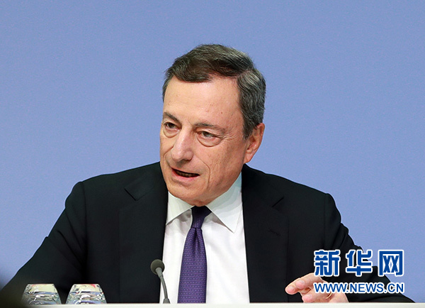 7月26日,在德國法蘭克福的歐洲中央銀行總部,歐洲央行行長德拉吉出席新聞發(fā)布會(huì)。 新華社記者 羅歡歡 攝