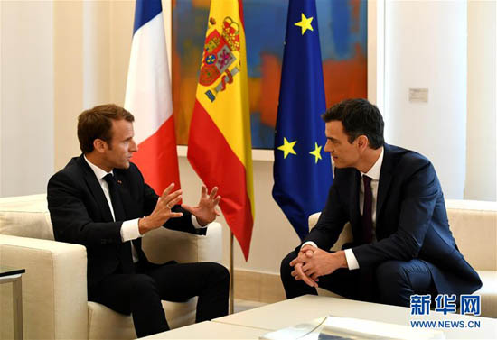 法國總統(tǒng)馬克龍7月26日在馬德里(圖左)與西班牙首相桑切斯舉行會談