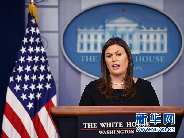 8月2日,在美國首都華盛頓,白宮發(fā)言人桑德斯出席記者會。新華社記者劉杰攝