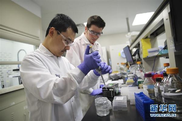 7月9日,在美國賓夕法尼亞州切斯特縣,方達(dá)醫(yī)藥公司研究人員在實(shí)驗(yàn)室里工作。新華社記者王迎攝