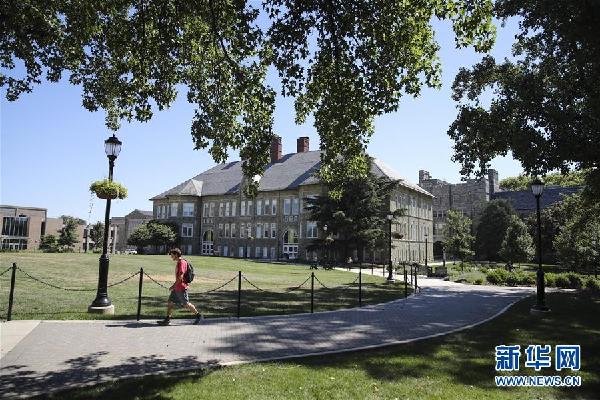 7月9日,在美國賓夕法尼亞州切斯特縣,學(xué)生走在西切斯特大學(xué)校園里。新華社記者王迎攝