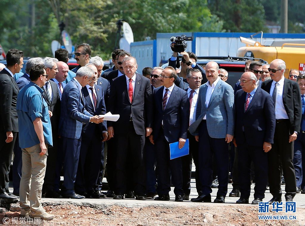當(dāng)?shù)貢r(shí)間2018年8月11日,土耳其奧爾杜,土耳其總統(tǒng)埃爾多安赴當(dāng)?shù)匾暡旌闉?zāi)區(qū)。 (圖片來源:視覺中國(guó))