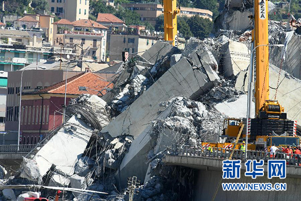 意大利北部熱那亞地區(qū)的莫蘭迪公路橋14日發(fā)生垮塌。該公路橋建于上世紀60年代,是連接A10公路與熱那亞城西部的一座主要公路橋,橋長1182米、寬18米,最高處離地面90米。橋面垮塌時,路面有超過30輛機動車在行駛。當?shù)孛襟w援引民事保護部門和消防部門官員的話說,事故原因可能是橋體存在結構問題。
