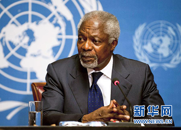 這是2012年6月30日,時任聯(lián)合國-阿盟敘利亞危機(jī)聯(lián)合特使安南在瑞士日內(nèi)瓦出席新聞發(fā)布會。 新華社記者謝海寧攝