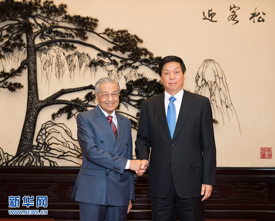 8月20日,全國人大常委會委員長栗戰(zhàn)書在北京人民大會堂會見馬來西亞總理馬哈蒂爾。 新華社記者 黃敬文 攝