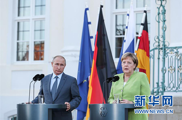 不懼美國(guó)威脅 默克爾與普京擁抱“實(shí)用主義”