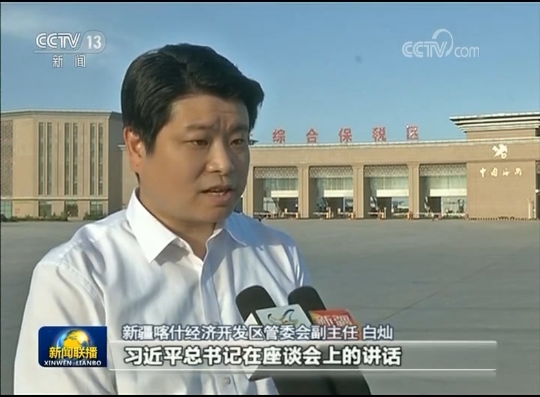 新疆喀什經(jīng)濟開發(fā)區(qū)管委會副主任 白燦:習近平總書記在座談會上的講話,為我們做好下一階段“一帶一路”工作提供了根本的遵循。我們將和周邊沿線國家按照“共商、共建、共享”的原則,共同推動跨國的基礎設施建設的互聯(lián)互通。
