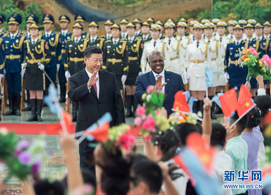 8月31日,國家主席習近平在北京人民大會堂同博茨瓦納總統(tǒng)馬西西舉行會談。這是會談前,習近平在人民大會堂北大廳為馬西西舉行歡迎儀式。 新華社記者 李濤 攝