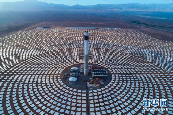 這是2018年6月7日在摩洛哥瓦爾扎扎特拍攝的努奧光熱電站項目二期工程(航拍照片)。從2015年起,中國電建集團下屬的山東電建三公司在瓦爾扎扎特承建努奧光熱電站項目二期和三期工程。努奧光熱電站項目是目前全球規(guī)模最大的光熱電站項目。二期工程槽式光熱電站現(xiàn)已進入商業(yè)運行,三期塔式光熱電站也于近日順利實現(xiàn)首次并網(wǎng)目標。待項目完全建成后,努奧光熱電站將為超過100萬的摩洛哥家庭提供清潔能源,還可以把富余的電能出口到歐洲。 新華社發(fā)/山東電建三公司供圖