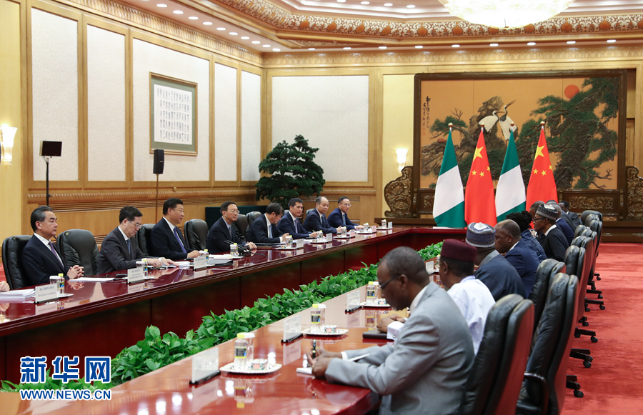 習(xí)近平強(qiáng)調(diào),在中非雙方共同努力下,中非合作論壇北京峰會(huì)成功閉幕,中非全面戰(zhàn)略合作伙伴關(guān)系的內(nèi)涵進(jìn)一步充實(shí)豐富,成為中非團(tuán)結(jié)合作的一次歷史性盛會(huì)。尼日利亞是非洲大國,也是中國在非洲重要的合作伙伴,我高度重視中尼關(guān)系發(fā)展。兩國關(guān)系正處于歷史上最好時(shí)期。中方贊賞尼日利亞政府堅(jiān)持一個(gè)中國政策,愿繼續(xù)同尼方在涉及彼此核心利益和重大關(guān)切問題上相互理解和支持。中方歡迎尼方參與“一帶一路”建設(shè),愿同尼方深化基礎(chǔ)設(shè)施建設(shè)、農(nóng)業(yè)、產(chǎn)能等領(lǐng)域合作,密切人文交流,助力尼日利亞經(jīng)濟(jì)社會(huì)發(fā)展,將中尼合作打造成中非合作的典范。