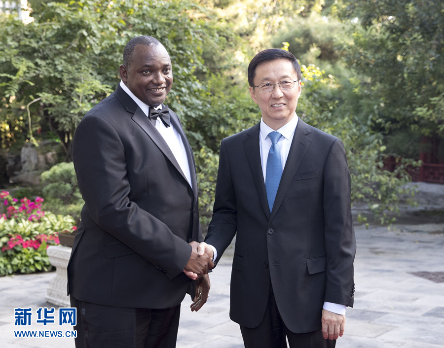 9月6日,中共中央政治局常委、國(guó)務(wù)院副總理韓正在北京釣魚臺(tái)國(guó)賓館會(huì)見岡比亞總統(tǒng)巴羅。 新華社記者 王曄 攝