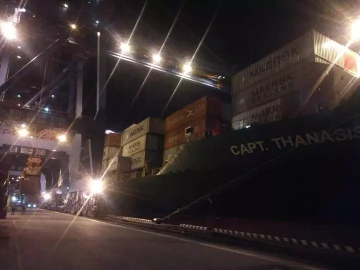 夜晚的符拉迪沃斯托克商港,燈火熠熠。滿載俄羅斯遠(yuǎn)東大豆的4只集裝箱正裝運(yùn)上船,將于近日啟程,目的地中國青島。