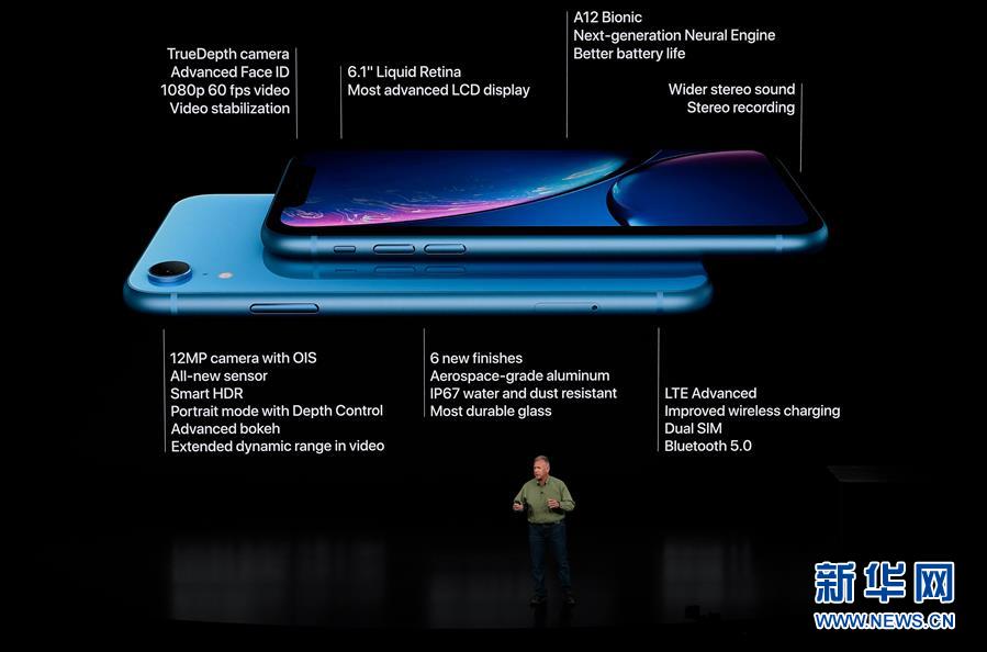 9月12日,在美國(guó)加利福尼亞州丘珀蒂諾市舉行的蘋果新品發(fā)布會(huì)上,蘋果公司全球市場(chǎng)營(yíng)銷高級(jí)副總裁菲利普·席勒介紹新推出的蘋果手機(jī)iPhone XR。新華社發(fā)