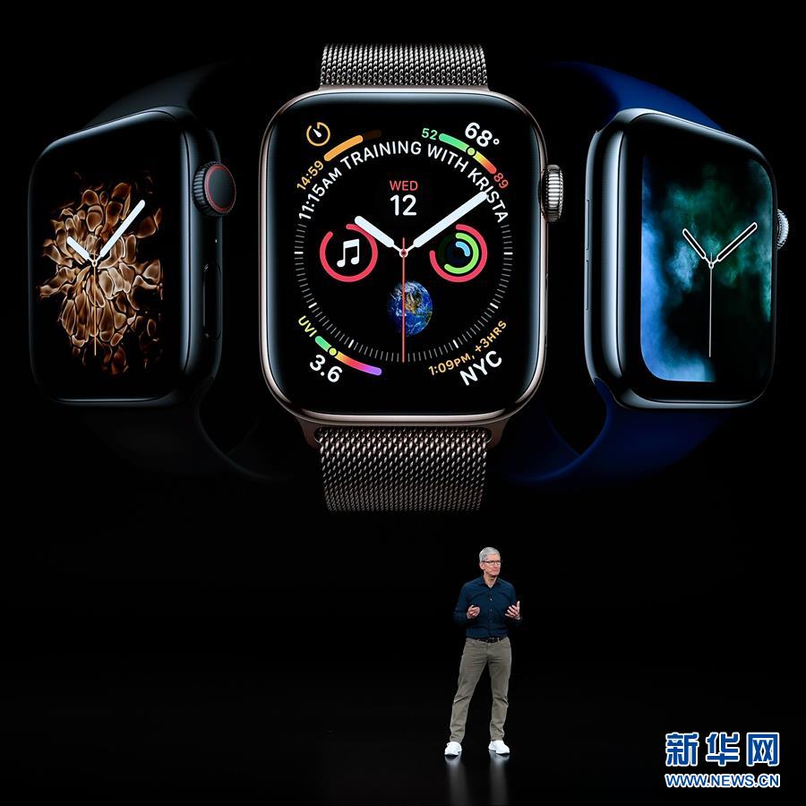 9月12日,在美國(guó)加利福尼亞州丘珀蒂諾市舉行的蘋果新品發(fā)布會(huì)上,蘋果公司首席執(zhí)行官蒂姆·庫(kù)克介紹新推出的第四代蘋果手表。?新華社發(fā)