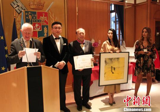全球公益聯(lián)盟當(dāng)?shù)貢r間21日晚在法國共和國衛(wèi)隊總部舉行了隆重的頒獎典禮,為來自全球各地在公益事業(yè)、文化藝術(shù)、科學(xué)教育等領(lǐng)域做出突出貢獻的人士授予榮譽勛章。中國工筆畫家崔景哲榮獲全球公益聯(lián)盟文學(xué)(藝術(shù))金質(zhì)勛章,也是此次頒獎典禮所有獲獎?wù)咧形ㄒ灰晃恢袊恕?/p>