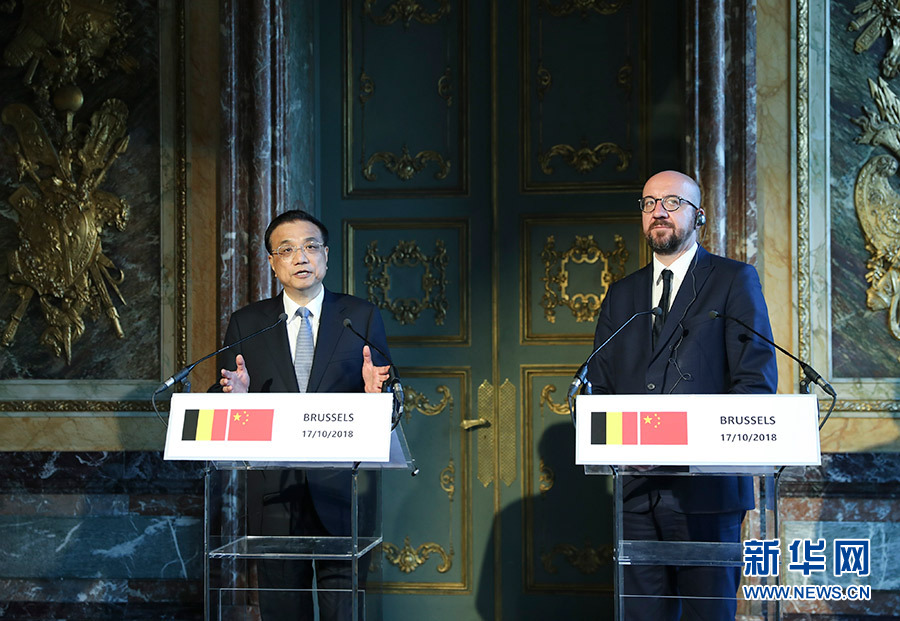新華社布魯塞爾10月17日電(記者鄭明達 翟偉)當?shù)貢r間10月17日上午,國務院總理李克強在布魯塞爾埃格蒙宮與比利時首相米歇爾共同會見記者。