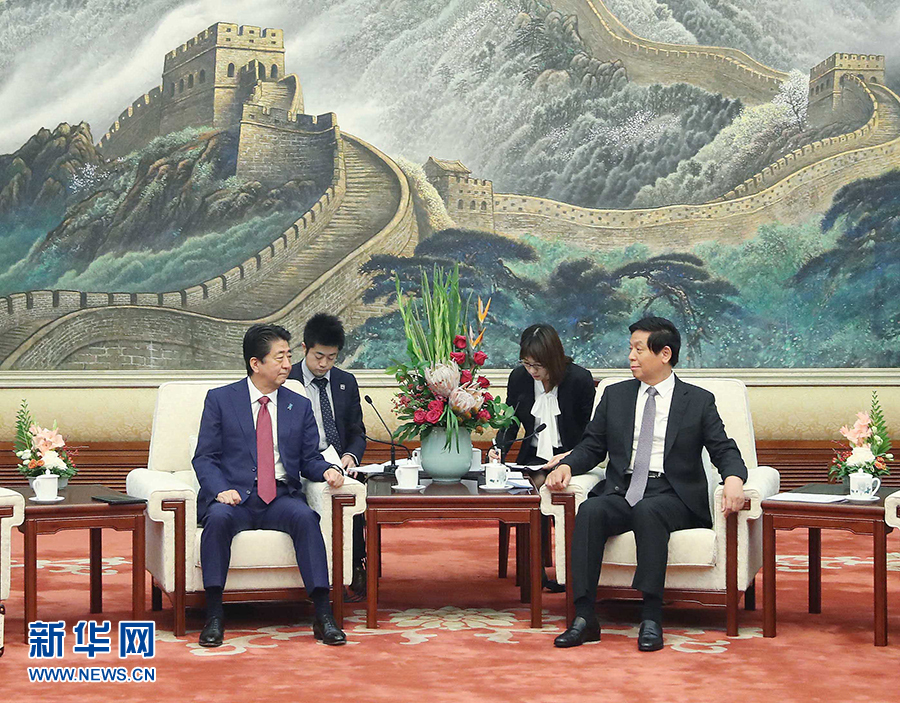 新華社北京10月26日電(記者鄭明達(dá))全國(guó)人大常委會(huì)委員長(zhǎng)栗戰(zhàn)書26日在人民大會(huì)堂會(huì)見日本首相安倍晉三。