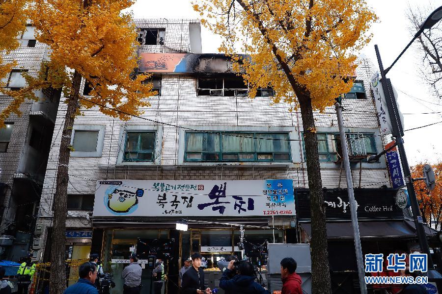 這是11月9日在韓國首爾拍攝的發(fā)生火災的建筑。 新華社記者王婧嬙攝