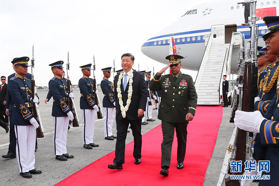 11月20日,國(guó)家主席習(xí)近平抵達(dá)馬尼拉,開(kāi)始對(duì)菲律賓共和國(guó)進(jìn)行國(guó)事訪(fǎng)問(wèn)。這是習(xí)近平在機(jī)場(chǎng)受到菲律賓政府高級(jí)官員熱情迎接。 新華社記者 謝環(huán)馳 攝