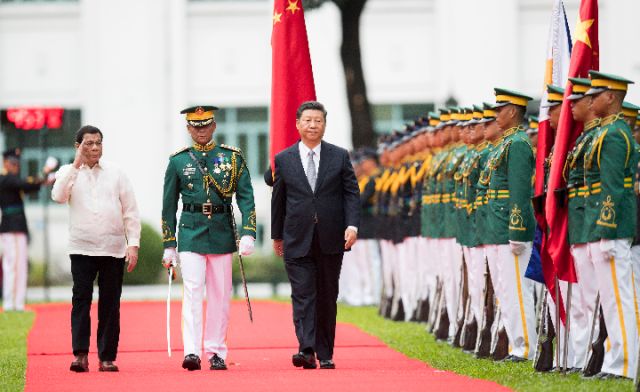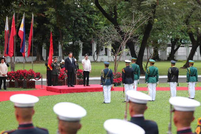 11月20日,國家主席習近平在馬尼拉同菲律賓總統(tǒng)杜特爾特舉行會談。會談開始前,習近平出席杜特爾特在總統(tǒng)府前草坪舉行的隆重歡迎儀式。新華社記者丁林攝