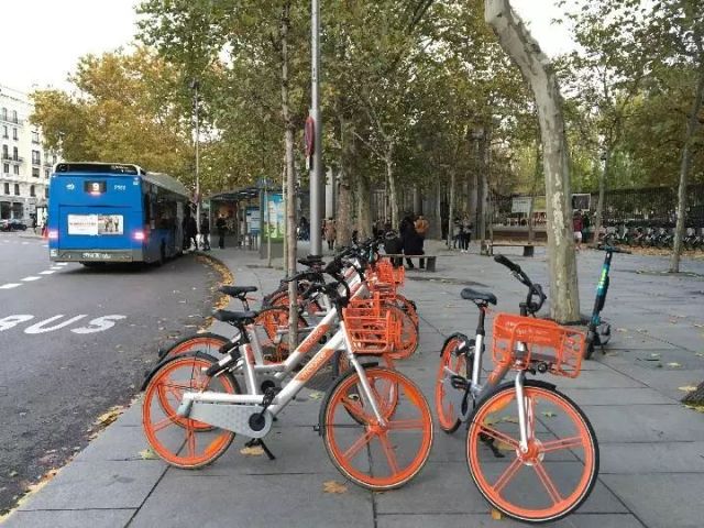 “登陸”西班牙街頭巷尾的摩拜單車。(新華社記者 李建敏 攝)