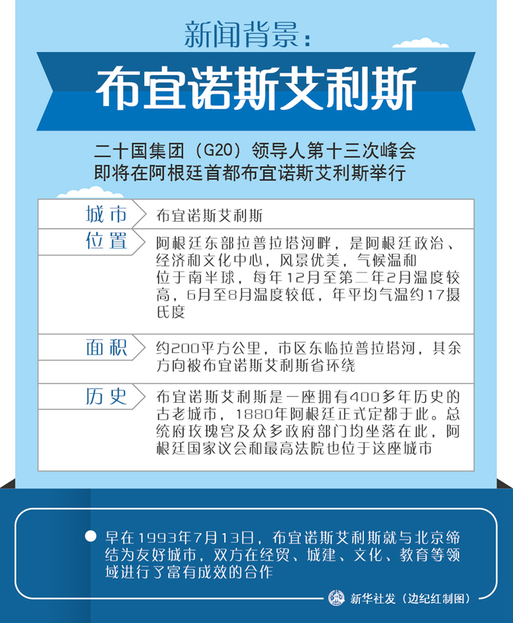 新華社布宜諾斯艾利斯11月28日電 新聞背景:G20領(lǐng)導(dǎo)人第十三次峰會舉辦地——布宜諾斯艾利斯